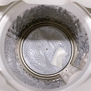拝見したES-GV8E-Sは、外観に日常使用による軽度の汚れが見られましたが、目立つ傷や大きなダメージはありませんでした。洗濯槽内は定期的にお手入れされていた様子で、内部は清潔感があり良好な状態でした。動作確認では洗い・すすぎ・脱水の各工程に問題はなく、通常使用に支障のないことを確認しています。
