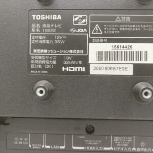 福島県川内村にて東芝 液晶テレビ 19S22 2019年製を出張買取 付属品ありで状態を考慮し査定しました