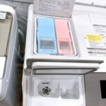 本体外観は目立つ傷や大きなへこみは見られず、全体的に清潔感のある状態でした。ドアパッキン部分に劣化はなく、ドラム内部もサビや強い汚れは確認されません。洗剤・柔軟剤の自動投入ケースも比較的きれいで、固着や詰まりはありませんでした。通電確認のうえ、洗い・脱水・乾燥の各工程が正常に動作することを確認しています。