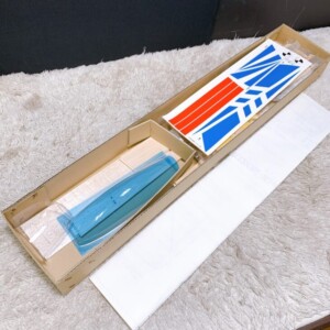 お預かりしたホライズン10SRは、未組立のモデルキットで、機体用の木製パーツやデカール、図面、付属パーツが揃っている状態でした。外箱には長期保管に伴うわずかな擦れは見られましたが、内部のパーツに目立つ汚れや破損はなく、全体的に良好な保管状態が保たれていました。スポーツ・スタント向けのRC飛行機として、現在でも一定の需要があるモデルです。