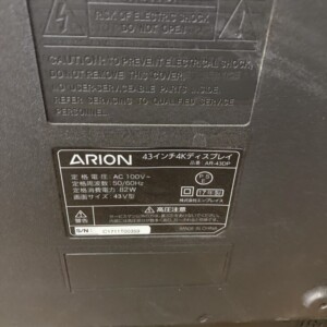 福島県玉川村へ出張買取 ARION 43V型4Kディスプレイ R-43DP 2017年製 使用感ありのため適正価格で査定しました