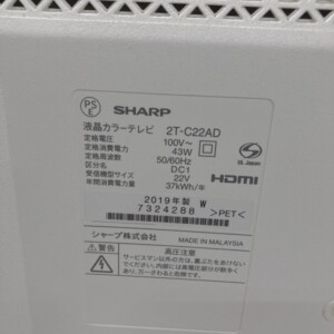 福島県田村市にてSHARP 液晶カラーテレビ 2T-C22AD 2019年製を出張買取 外観背面に汚れありも画面良好のため適正価格で査定しました