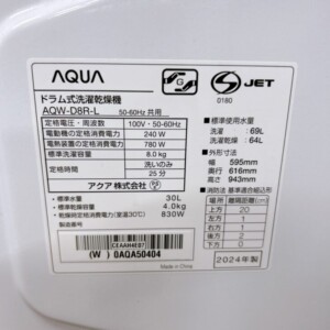 今回は福島県矢吹町にお住まいの40代男性(会社員・親子世帯)より、AQUA(アクア) ドラム式洗濯乾燥機 AQW-D8R-L(2024年製)を出張買取にてご依頼いただきました。