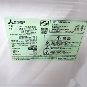 今回は福井県永平寺町にお住まいの40代女性(主婦・夫婦世帯)より、三菱電機 ノンフロン冷凍冷蔵庫 MR-P15E-S(2019年製)を出張買取にてご依頼いただきました。