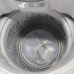 拝見した洗濯機は、外観に大きなへこみや目立つ傷は見られず、全体的に丁寧に使用されていた印象です。操作パネルの文字消えやボタンの反応不良もなく、通電後の動作確認では洗い・すすぎ・脱水まで問題なく作動しました。槽内はステンレス部分に軽微な使用感はあるものの清潔感があり、異臭や強い汚れは確認されていません。給水ホースや糸くずフィルターも揃っていました。