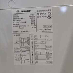 福井県越前町でSHARP 全自動洗濯機 ES-GV8E-Sを出張買取|8.0kg・インバーター搭載で使用感少なめのため適正価格で査定