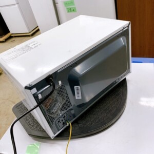 拝見した電子レンジは、外観に目立つへこみや大きな傷は見られず、天板や側面にわずかな使用に伴う汚れがある程度でした。庫内も比較的きれいな状態で、ターンテーブルの欠けや割れはなく、動作確認でも加熱・操作ともに問題なく使用可能でした。取扱説明書も一緒に保管されており、全体として中古品としては良好なコンディションです。
