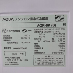 福島県双葉郡大熊町へ出張買取 AQUA 冷蔵庫 AQR-8K(S) 2022年製 やや使用感ありのため適正価格で査定しました