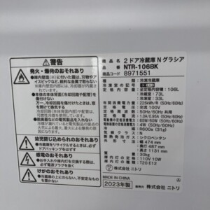 福島県安達郡大玉村へ出張買取 ニトリ 2ドア冷蔵庫 NTR-106BK 2023年製 使用感ありのため適正価格で査定しました