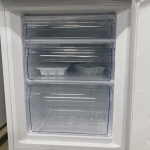 拝見したHR-D1701Wは、外装に大きなへこみや目立つキズは見受けられず、日常使用による軽微な擦れが確認できる程度の良好なコンディションでした。庫内は棚板・クリアケースともに破損や割れがなく、食品汚れや臭いの付着も少ない清潔な状態を維持されていました。冷蔵室・冷凍室ともに冷却機能は正常で、温度調整ダイヤルも問題なく作動しており、再販に適した状態と判断できました。