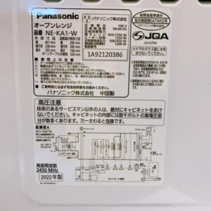 今回は福島県新地町にお住まいの30代女性・主婦・親子世帯・持ち家(一戸建て)のお客様より、Panasonic オーブンレンジ NE-KA1-W(2022年製)を出張買取にてご依頼いただきました。