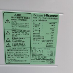 福島県国見町へ出張買取 ハイセンス HR-B95A 2021年製 使用感の少ない良好状態のため適正価格で査定しました