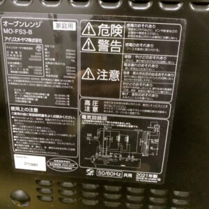 今回は福島県桑折町にお住まいの20代男性(学生・単身・賃貸アパート)より、アイリスオーヤマ オーブンレンジ MO-FS3-B(2021年製)を出張買取にてご依頼いただきました。電子レンジとオーブン機能を兼ね備えた家庭用モデルで、温めから簡単な調理まで対応できる使い勝手の良さが特徴です。コンパクトながら庫内容量18Lで、一人暮らしの方を中心に需要のある製品となっています。
