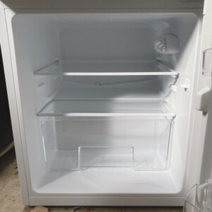 庫内は清潔感のある状態で、棚板やクリアケース、冷凍室内にも目立つ汚れや破損は見受けられませんでした。外観も全体的にきれいで、ドア表面の傷やパッキンの劣化もなく、日常使用による軽微な使用感のみ確認できる状態です。動作確認でも冷却機能に問題はありませんでした。