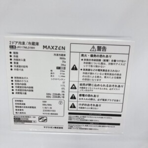 福島県本宮市でMAXZEN JR117ML01WH 2ドア冷凍冷蔵庫を出張買取 2023年製で庫内状態良好のため適正価格で査定