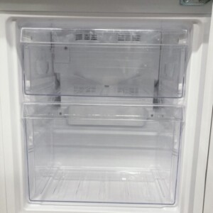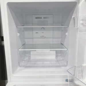 お預かりしたJR-NF121Cは、外観に目立つ傷やへこみは見られず、全体的にきれいな状態でした。扉や側面にも擦れ跡はほとんどなく、設置環境の良さがうかがえます。庫内についても汚れや臭いはなく、使用感が少ない良好なコンディションでした。棚やドアポケットなどの備品もすべて揃っており、冷却動作・温度調整ともに問題なく確認できました。