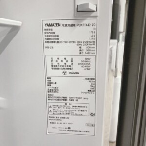今回は福井県あわら市にお住まいの20代男性(会社員・単身・賃貸マンション)より、YAMAZEN 冷凍冷蔵庫 PJKFR-D170(2022年製)を出張買取にてご依頼いただきました。173Lの2ドアタイプで単身世帯に人気の容量帯であり、シンプル設計と省スペース性能から中古市場でも一定の需要があるモデルです。比較的新しい年式で使用状況も良好だったため、細部まで状態を確認し査定いたしました。