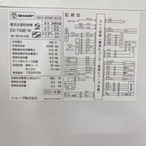神奈川県川崎市川崎区へ出張買取 SHARP 全自動洗濯乾燥機 ES-TX8E-W 2021年製 使用感少なめのため適正価格で査定しました