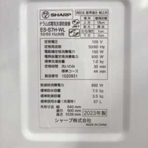 神奈川県川崎市川崎区へ出張買取 SHARP ドラム式洗濯乾燥機 ES-S7H-WL 2023年製 付属品完備のため適正価格で査定しました