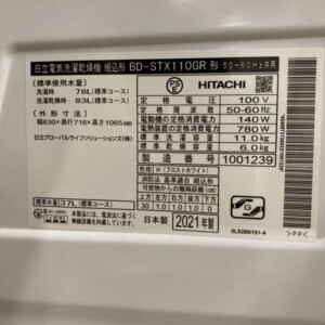 川崎市多摩区へ出張買取 日立 ドラム式洗濯乾燥機 BD-STX110GR 2021年製 使用感少なめのため適正価格で査定しました