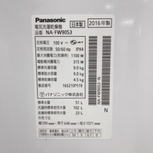 今回は神奈川県横浜市神奈川区にお住まいの30代女性のお客様より、パナソニック製 電気洗濯乾燥機 NA-FW90S3(2016年製)の出張買取についてご依頼をいただきました。
