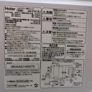 神奈川県川崎市高津区へ出張買取 Haier JM-FH18J オーブンレンジ 使用感ありのため状態を踏まえて査定しました