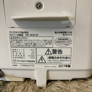 神奈川県川崎市高津区へ出張買取 アイリスオーヤマ IHジャー炊飯器 ERC-IB30-W 2017年製 使用感はあるがきれいなため適正価格で査定しました