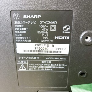今回は鎌倉市にお住まいの50代女性(主婦・夫婦世帯・持ち家(マンション・分譲マンション))より、SHARP AQUOS 24型液晶テレビ 2T-C24AD(2021年製)を出張買取にてご依頼いただきました。