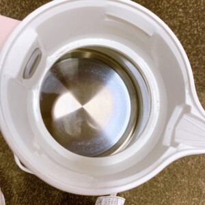 お預かりした電気ケトルは日常的に使用されていたため、外装には細かな擦れや軽度の汚れが確認できました。内部のステンレス部分には使用に伴う水垢が若干見受けられましたが、目立つサビや破損はありませんでした。通電確認を行ったところ、沸騰動作・自動電源オフ機能ともに問題なく作動しました。電源コードやベース部分にも破損はなく、再販可能な状態でした。