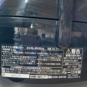 神奈川県秦野市へ出張買取 象印 NL-BV05 マイコン炊飯ジャー 使用感ありのため適正価格で査定しました