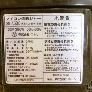 東京都世田谷区へ出張買取 ニトリ マイコン炊飯ジャー SN-A5BK 使用感ありのため適正価格で査定しました
