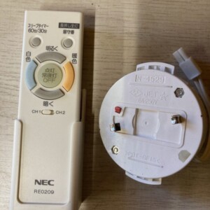 お預かりした商品は、カバー表面に目立つ傷や割れはなく、全体的にきれいな状態でした。本体内部や取付部にも破損は見られず、点灯・調光・調色動作も正常に確認できました。リモコンと引掛シーリング用アダプターも揃っており、再販に支障のない内容でした。