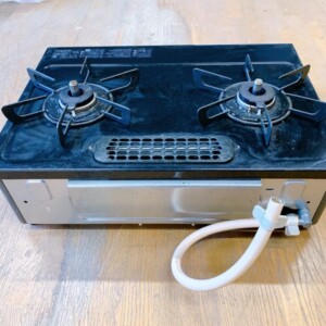 お預かりしたガスコンロは、天板や五徳部分に日常使用による汚れや使用感が見受けられる状態でした。大きな割れや変形はなく、バーナー周辺も目立つ損傷はありません。