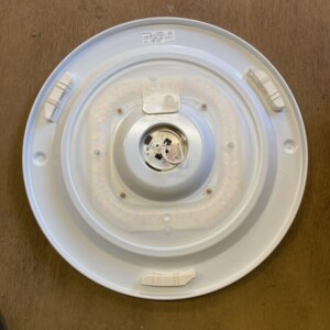 お預かりしたLEDシーリングライトは、点灯・消灯、明るさ調整、色味切替の各動作が正常であることを確認しました。内部のLED基板に焼けや欠損は見られず、実使用に支障はありません。カバー表面には経年使用に伴う細かな擦れや軽度のくすみが確認できましたが、割れや欠けはありませんでした。付属品としてリモコンがあり、各ボタンの反応も良好でした。