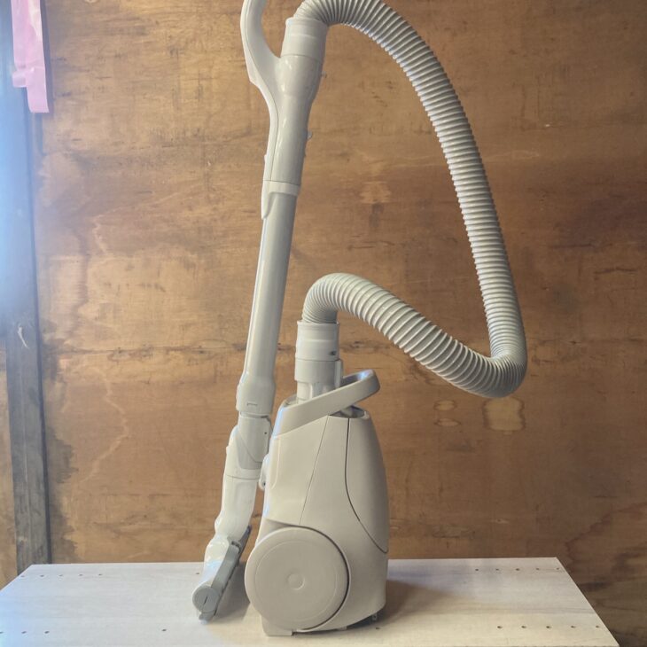 お預かりした掃除機は、全体的に外観の黄ばみや大きな傷は見られず、比較的きれいな状態でした。操作部のボタン表示もはっきりしており、使用による摩耗は軽微です。通電後の吸引動作を確認したところ、モーター音に異常はなく、吸引力も安定しており問題なく動作していました。ホースや延長管、床用ノズルも揃っており、日常使用に支障のない状態と判断しました。