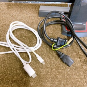 お預かりしたモニターは、電源投入後の表示確認にて映像の乱れやドット抜けは見られず、発色・輝度ともに安定していました。画面表面には使用に伴う軽微な拭き跡や指紋が確認できましたが、視聴に支障となる傷やムラはありません。背面・スタンド部にも大きな欠けや割れはなく、各入力端子(HDMI、DVI、VGA)も問題なく認識。電源ケーブルおよびHDMIケーブルが付属している点も評価対象としました。