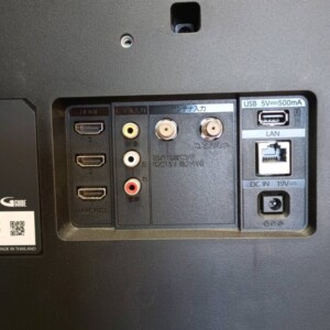 拝見したFUNAIの液晶テレビは、画面・外装ともに大きな傷や割れは見られず、全体的に落ち着いた使用感のある状態でした。通電・映像表示・音声出力も問題なく、HDMI端子やアンテナ端子など各入力部も正常に確認できました。スタンドは装着された状態で安定しており、電源アダプターも付属していたため、実用面での評価をしっかり反映できる状態でした。
