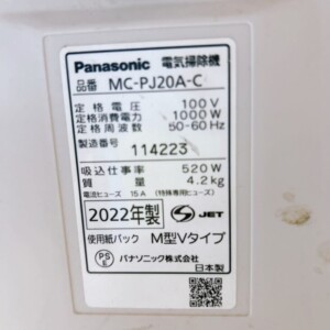 東京都渋谷区千駄ヶ谷へ出張買取 Panasonic MC-PJ20A-C 細かな擦れありのため適正価格で査定しました