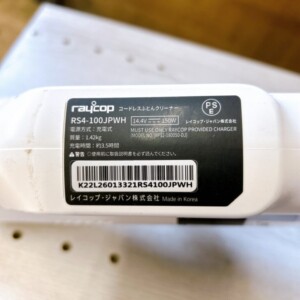 拝見したRS4-100JPWHは、日常的に使用されていたことによる本体外装やヘッド部分に細かな擦れや汚れが見られましたが、割れや大きな破損は確認されませんでした。ダストカップの着脱、回転ブラシの動作、吸引力も問題なく、コードレスクリーナーとしての基本性能は良好な状態でした。使用感はあるものの、実用面では十分評価できるコンディションです。