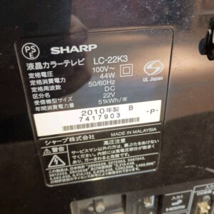 東京都小平市でSHARP AQUOS 液晶テレビ LC-22K3を出張買取 2010年製・使用感ありのため状態を踏まえて査定しました