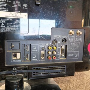 拝見したLC-22K3は、長年使用されていたこともあり本体外装や背面に細かな擦れや汚れが見受けられました。画面にも軽度の拭き跡はありましたが、表示不良や液晶割れはなく、電源投入後の映像・音声出力は正常に確認できています。HDMI端子や各入力端子も問題なく反応し、リモコンが付属している点は評価できるポイントでした。
