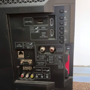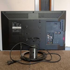 お預かりしたLC-22K30は、長年日常的に使用されていたため、本体フレームや背面に細かな擦れやホコリの付着が見受けられました。画面にも軽度の拭き跡はありますが、液晶割れや表示ムラはなく、電源投入後の映像・音声出力は正常に確認できています。HDMI端子やアンテナ端子など各入力も問題なく反応し、リモコンが付属している点は査定において評価できるポイントでした。