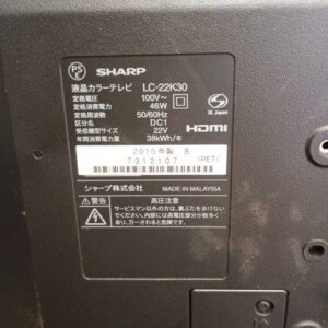 東京都三鷹市でSHARP AQUOS 液晶テレビ LC-22K30を出張買取 2015年製・使用感ありのため状態を踏まえて査定しました