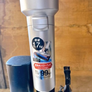 拝見したIC-SLDCP12-Sは、日常的に使用されていた掃除機のため、ヘッド部分やパイプ部分に細かな擦れや取り切れない汚れが見受けられました。ダストカップ内部には使用感がありましたが、破損や割れはなく、吸引動作や自走式パワーヘッドの回転も正常に確認できています。バッテリーは装着された状態で、動作確認時も問題なく稼働しており、ブラシ付きノズルなどの付属品も揃っている点は評価ポイントとなりました。