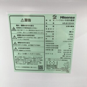今回は東京都八王子市にお住まいの30代男性のお客様より、Hisense ノンフロン冷凍冷蔵庫 HR-B12E4W(2024年製)の出張買取をご依頼いただきました。