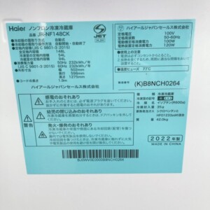 今回は東京都港区新橋にお住まいの40代女性のお客様より、Haier(ハイアール)ノンフロン冷凍冷蔵庫 JR-NF148CK(2022年製)を出張買取にてご依頼いただきました。お客様は会社員で単身世帯、賃貸マンションにお住まいとのことです。
