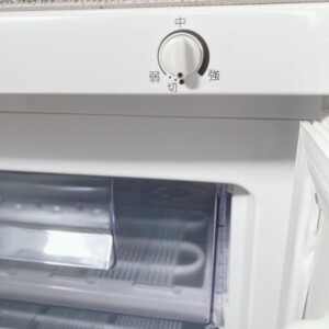 お預かりした冷凍庫は外観に大きなへこみや破損は見られず、全体的に落ち着いた使用感の状態でした。庫内の引き出しはすべて揃っており、割れや欠けも確認されません。温度調整ダイヤルの反応も問題なく、冷却動作は正常であることを確認しています。中古品としては比較的きれいな印象です。