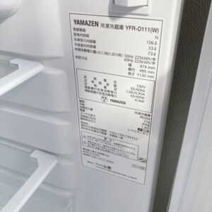 東京都中央区日本橋へ出張買取 YAMAZEN 冷凍冷蔵庫 YFR-D111(W) 2024年製 使用感少なめを査定しました