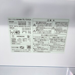 今回は中央区銀座にお住まいの40代男性・会社員・単身世帯・賃貸マンションのお客様より、HITACHI ノンフロン冷凍冷蔵庫 RL-154SA(2023年製)を出張買取にてご依頼いただきました。
