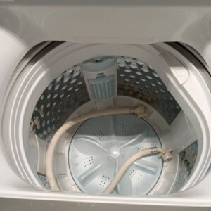 お預かりした洗濯機は、外観に目立つへこみや大きな傷は見受けられず、全体的にきれいな状態でした。操作パネル部分の表示も問題なく、ボタンの反応も正常です。洗濯槽内部も比較的清潔に保たれており、強いカビ臭や洗剤残りの付着は確認されませんでした。給水ホース・排水ホースも揃っており、家庭用7.0kgタイプとしては良好なコンディションです。